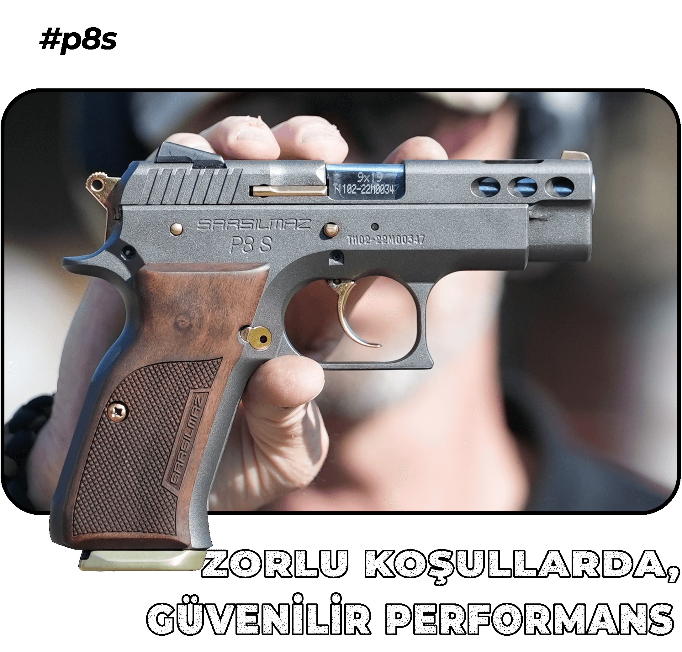 Ergonomik yapısının yanı sıra sahip olduğu teknik özelliklerle güvenilir ve hedefe yönelik bir tasarıma sahip olan P8 S, ayarlanabilir gez ve değiştirilebilir arpacığıyla farklı geliştirmelere de açık bir model olarak dikkat çekiyor.