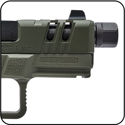 Sarsılmaz’ın yeni jenerasyon modellerinden SAR9T SC GEN3, ergonomik gövde yapısı ve parmak destekli şarjör ile maksimum tutuş konforu sunar.