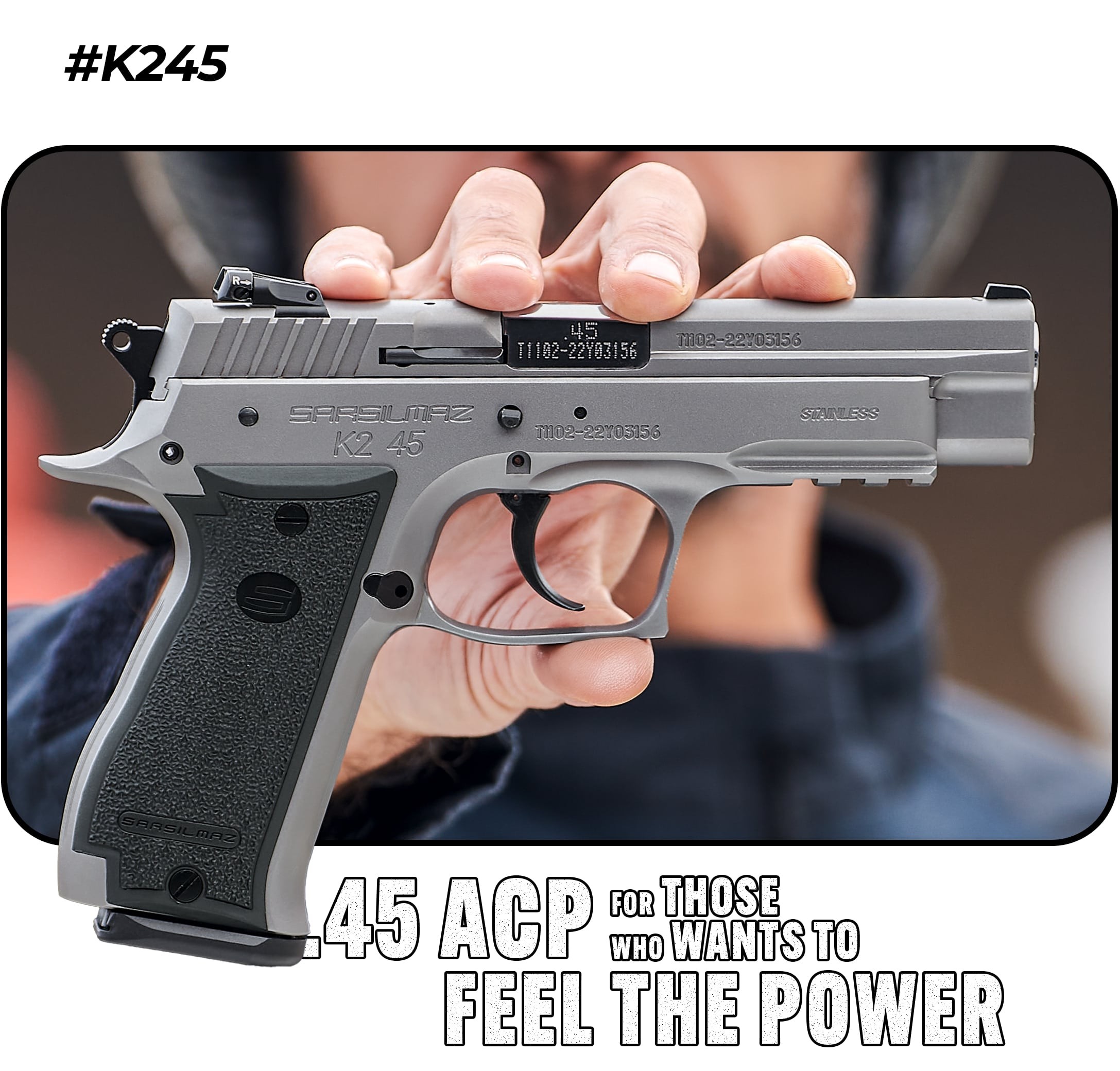 One of the world's highest-capacity .45 caliber pistols, the K2-45 is one of Sarsılmaz's flagship models.