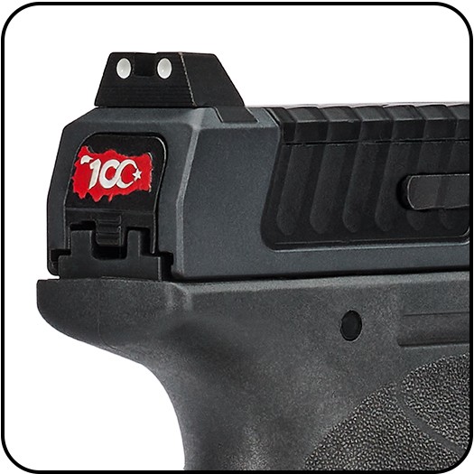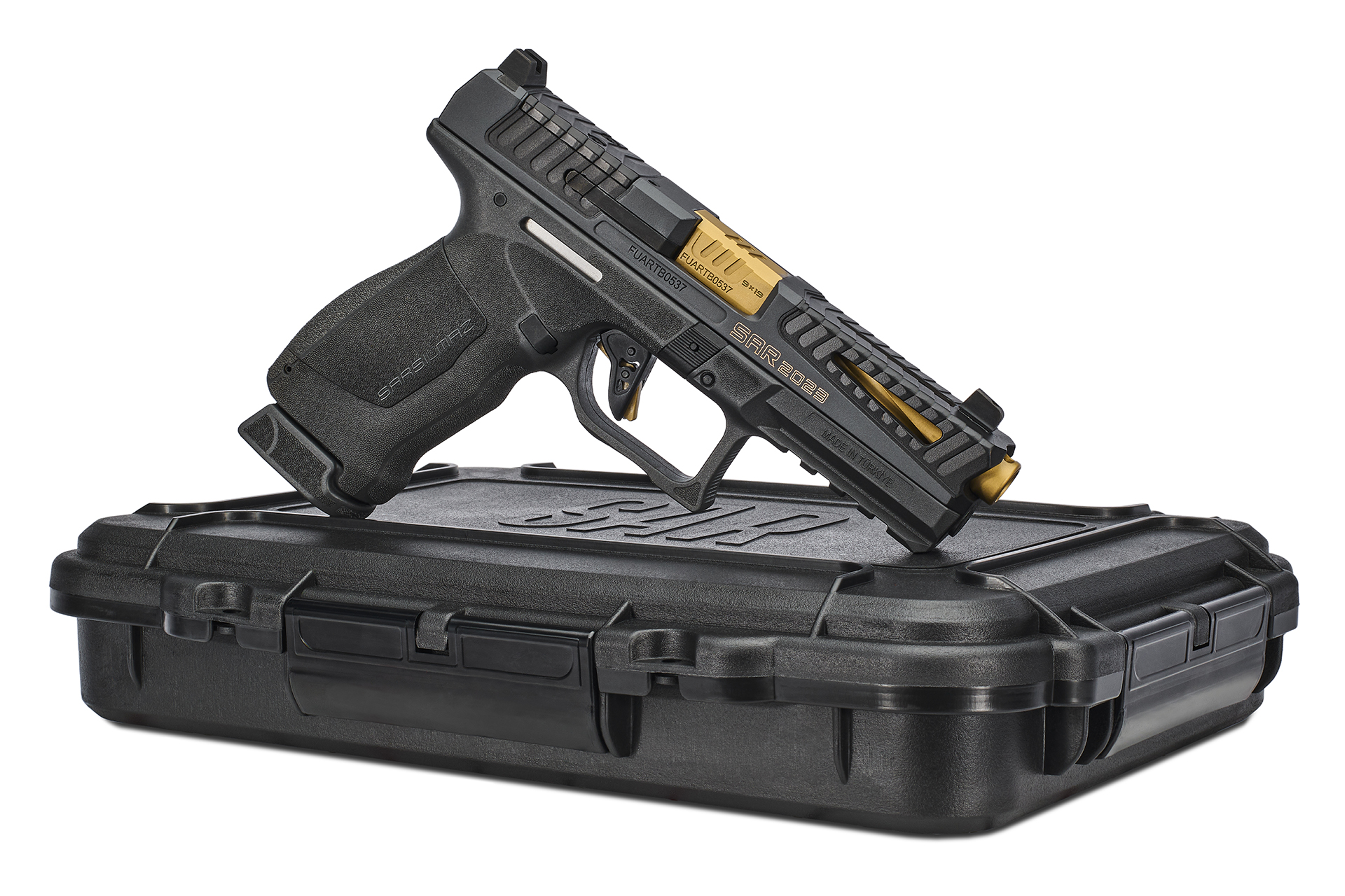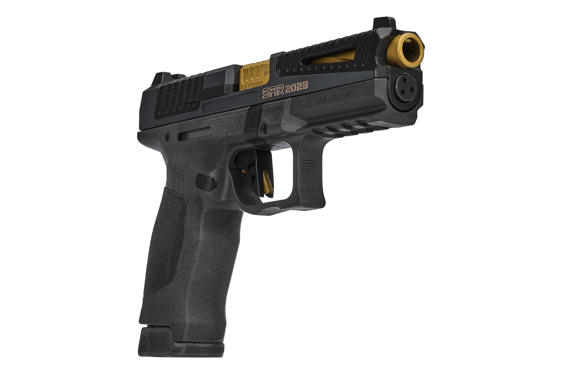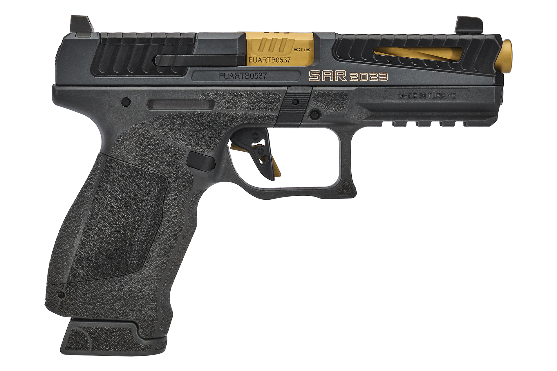 İkinci yüzyılına giren Türkiye Cumhuriyeti’nin başarılarla dolu tarihini ve gelecek hedeflerini simgeleyen tasarım ögeleriyle zenginleştirilen tabanca, bu doğrultuda dikkat çekici bir görünüm sunuyor. Kalite, yenilik ve performansın ön planda olduğu SAR 2023, kavramayı kolaylaştıran ergonomik kabza yapısı ve sürgü üzerinde kolay ve hızlıca atışa hazır hale getirilmek üzere tasarlanmış ön arka çentikleriyle her zaman üstün bir atış deneyimi sağlıyor. 15-17 mermi kapasiteli şarjör seçenekleri ve sadece 730 gramlık boş ağırlığı ile güvenilir ve hafif bir tabanca arayanlar için optimum çözüm sunan SAR 2023, özel tasarım 90 derece spor tetik sayesinde kısalan reset mesafesiyle kullanıcıya kusursuz bir atış hassasiyeti sunuyor, bu özellik ayrıca daha hızlı ve isabetli tekrarlı atışlara da olanak tanıyor. SAR 2023’ün kapak üzerindeki soğutma kanalları ise özellikle seri atışların ardından namlunun daha hızlı soğumasını sağlayarak geri tepmeyi önemli ölçüde azaltıyor. Sahip olduğu picatinny ray sistemi sayesinde her türlü aksesuara kolayca uyum sağlayan SAR 2023, ayrıca reddot kullanımını kolaylaştıran tasarım özellikleriyle de çok yönlü bir tabanca. Ergonomik yapısı ile “M” ve “L” ebatlarında değiştirilebilir sırtlık özelliği de SAR 2023’ün öne çıkan diğer avantajları arasında. SAR 2023, teknik özelliklerinin yanı sıra göz alıcı tasarım unsurlarıyla da Türkiye Cumhuriyeti’nin 100. yaşına yakışır bir görünüşe sahip. Kapak üzerinde bulunan özel 100. yıl logosu ve gold markalama unsurlarıyla Cumhuriyetimizin ikinci yüzyılını selamlayan SAR 2023, enerjik görünümüyle geleceğe dair hedefleri vurguluyor.