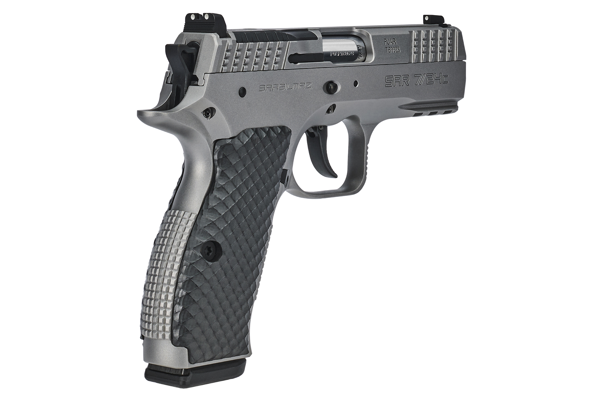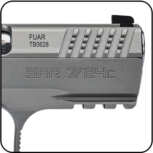 Çift hareketli tetik sistemine sahip olan SAR 7/24 C daha hızlı ilk atış, pratik kullanım ve güvenli taşıma avantajlarıyla benzerlerinden ayrılırken, isteğe bağlı olarak düz (flat) tetik tasarımı ve tek hareketli tetik sistemine dönüştürülebilme olanağı sunuyor. SAR 7/24 C için özel olarak geliştirilen gövde tasarımı gerek kavrama gerekse atış sırasında ergonomik tutuşu üst seviyeye taşıyan gövde çizgileriyle tamamlanıyor. Model ayrıca, ergonomiye uygun ve tutuşu kolaylaştıran dikey tetik korkuluğu, çift sıra 17 mermi kapasiteli şarjör ve dengeli atış hissiyatını artıran, kapak takımına montajlı namlu burcu gibi ayırt edici özelliklere sahip. SAR 7/24 C ayrıca gelişmiş fonksiyonlara sahip red dot opsiyonunu uyumlu mekanik nişan hattıyla zenginleştiriyor. SAR 7/24 C ağırlık denge unsurunu gözeten yapısıyla kullanıcısına en üst seviyede atış performansı sunuyor.