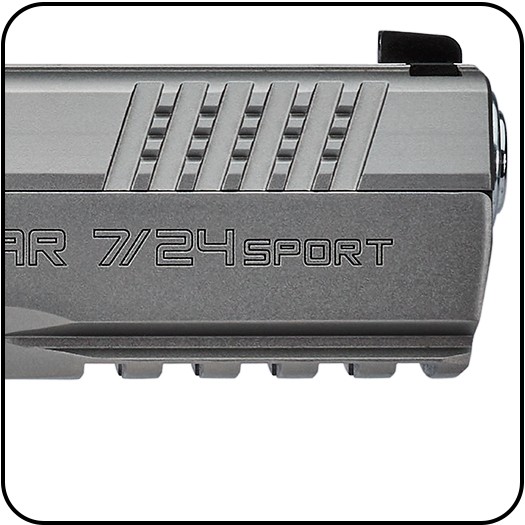 Tek hareketli tetik sistemine sahip düz (flat) tetik tasarımı ve ayarlanabilir reset mesafesi, SAR 7/24 Sport’a daha hızlı, daha hassas atış olanağı, maksimum tetik kontrolü ve daha net bir tetik hissi sağlıyor. SAR 7/24 SPORT ayrıca gelişmiş fonksiyonlara sahip red dot opsiyonunu uyumlu mekanik nişan hattı ile zenginleştiriyor. SAR 7/24 SPORT için özel olarak geliştirilen gövde tasarımı gerek kavrama gerekse atış sırasında ergonomik tutuşu üst seviyeye taşıyan gövde çizgileriyle tamamlanıyor. Tutuşu kolaylaştıran ergonomiye uygun dikey tetik korkuluğu SAR 7/24 SPORT’un bir diğer ayırt edici özelliği. Çift sıra 17 mermi kapasiteli şarjörle beslenen SAR 7/24 SPORT, hızlı atışlarda avantaj sağlayan kapak takımına montajlı namlu burcuna sahip. SAR 7/24 ayrıca “full size” sınıfına uygun ağırlık denge unsurunu gözeten ergonomik yapısıyla kullanıcısına en üst seviyede atış performansı sunuyor. Atış sırasında hızlı şarjör değişimini kolaylaştıran ve silahın tutuş hakimiyetini artıran Magwell tasarımıyla geliştirilen SAR 7/24 SPORT, ayrıca gelişmiş fonksiyonlara sahip red dot opsiyonunu uyumlu mekanik nişan hattıyla zenginleştiriyor. SAR 7/24 SPORT’un kutu içeriğinde, Magwell kullanmadan taşımaya uygun kabza kapakları ve uyumlu şarjör alt kapakları da sunuluyor.