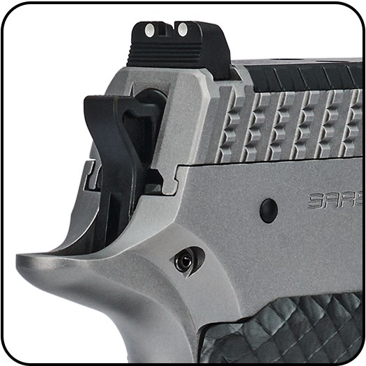 Sarsılmaz’ın ileri mühendislik ürünü en yeni tabanca serisi SAR 7/24’ün net, kararlı ve profesyonel tasarım yaklaşımını sportif ve rekabetçi platformların ihtiyaçlarıyla bir araya getiren SAR 7/24 SPORT, kendini her an, her koşulda güvende hissetmek isteyenlerin tercihi.
